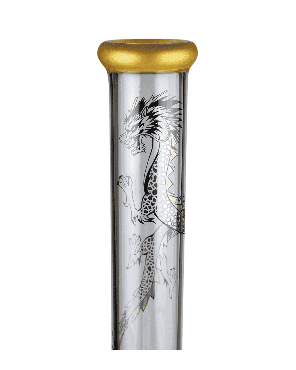 La GTI Golden Dragon est un véritable régal pour les yeux ! Avec son design impressionnant de dragon et ses bords en or mat, ce bang en verre borosilicaté n'est pas seulement un appareil à fumer fonctionnel, mais aussi un merveilleux cadeau. Le bang de 450 mm de haut impressionne par sa finition de haute qualité et est livré dans un élégant coffret cadeau , ce qui en fait le cadeau parfait pour les occasions spéciales.