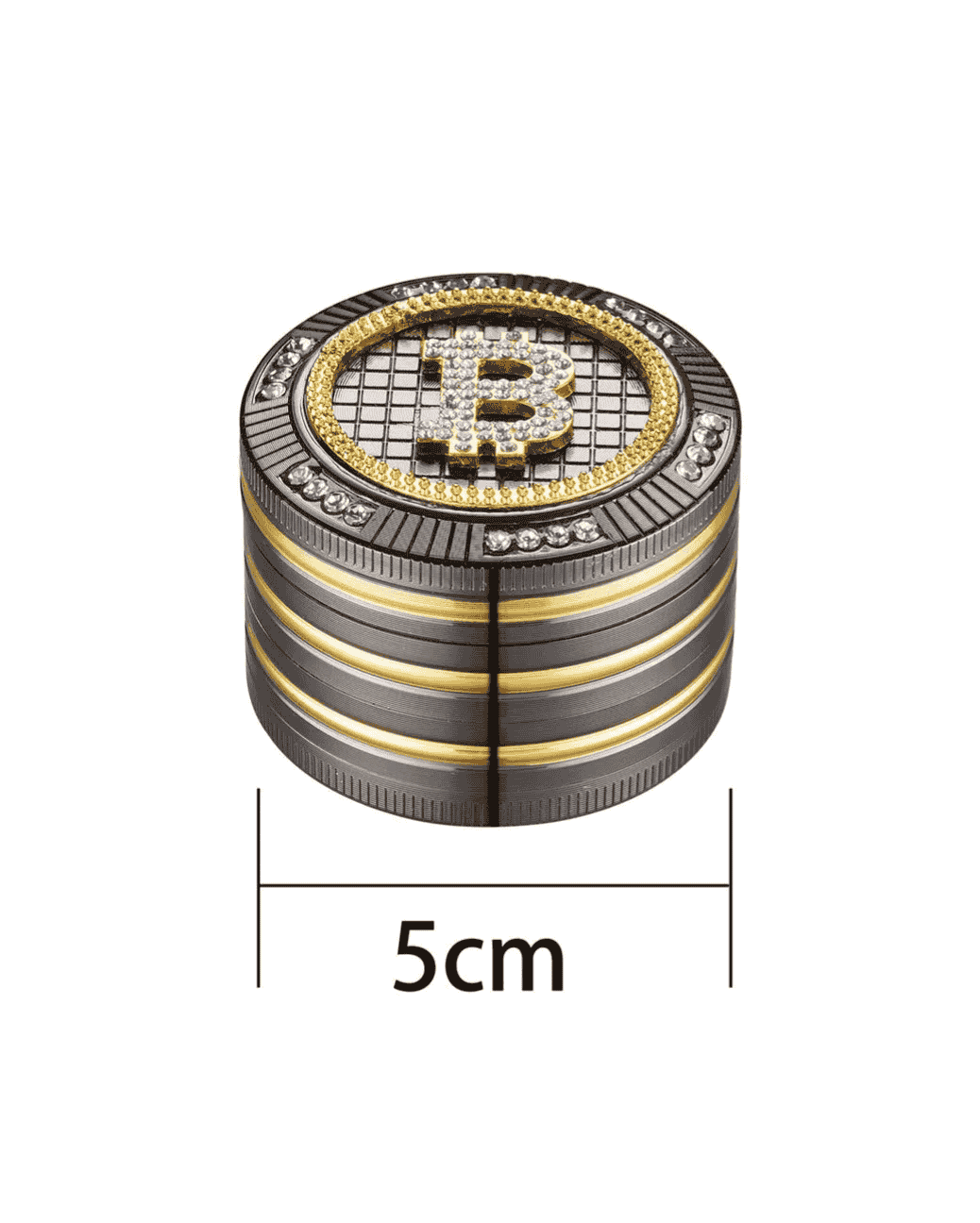 Ce grinder unique de style gangsta se concentre sur un design et une fonctionnalité accrocheurs. Avec sa finition or anthracite brillante et ses pierres de verre étincelantes, il attire tous les regards. Le motif Bitcoin donne au grinder une dose supplémentaire de style cool.